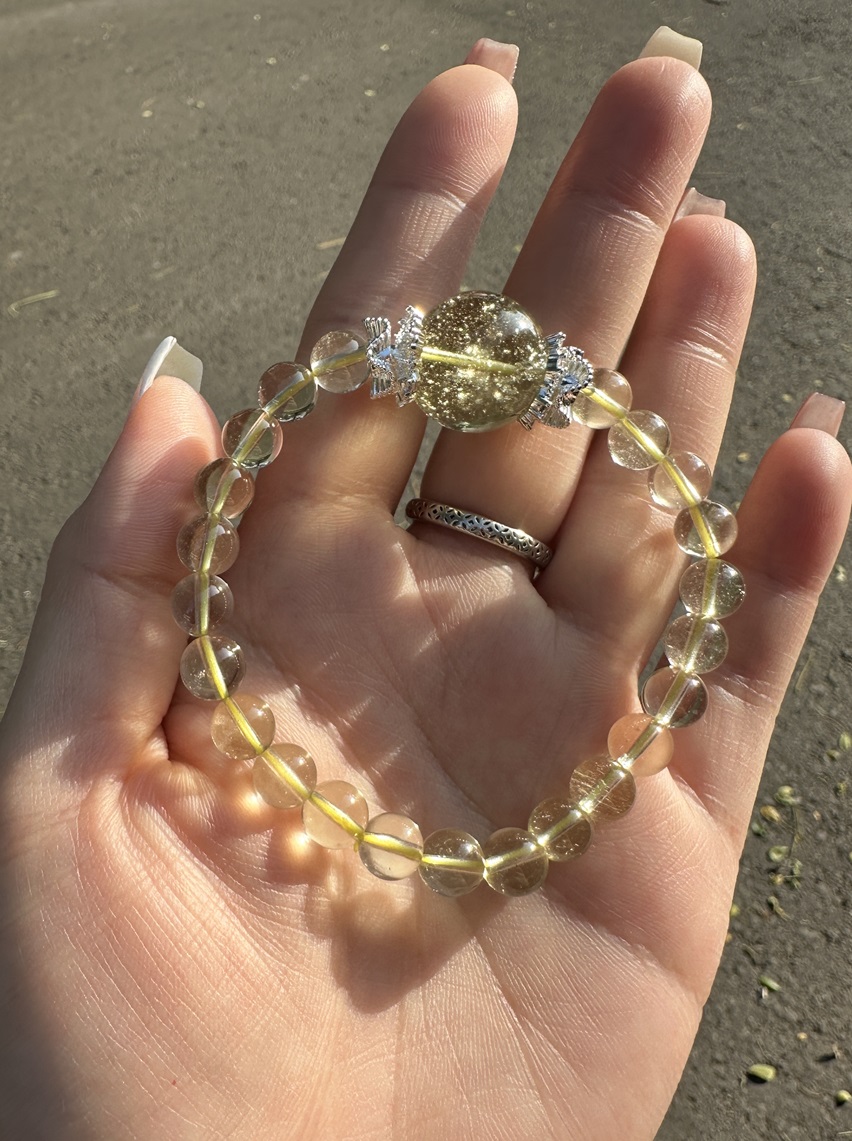 😊這串頂珠在陽光下非常金黃爆閃.且螢光感非常好.繩珠晶體是最高頂級的全淨體.上手超級好看.🤩